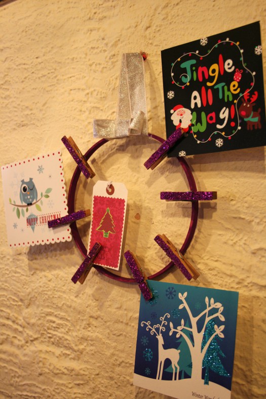 December 2, 2011 at 11:16What a good idea! The glittery pegs look so cool and I can imagine using them afterwards to hang the washing out! I am always cluttering up places with Christmas cards so this will not only look beautiful and Christmassy but also give things a much needed tidy up!