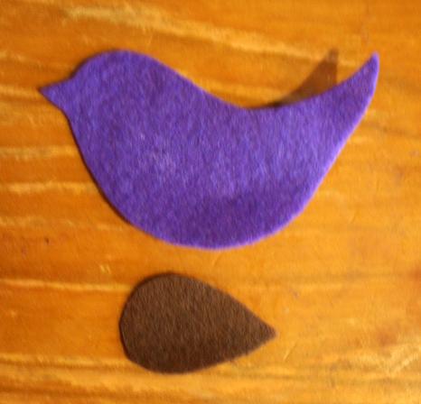 First step is to print out this template on cardstock, cut out and draw round it onto your felt. You’ll need to cut out two birds and two wings out of each colour felt.