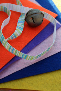Felt in whatever colours you like, a metre length of ribbon and a bell.