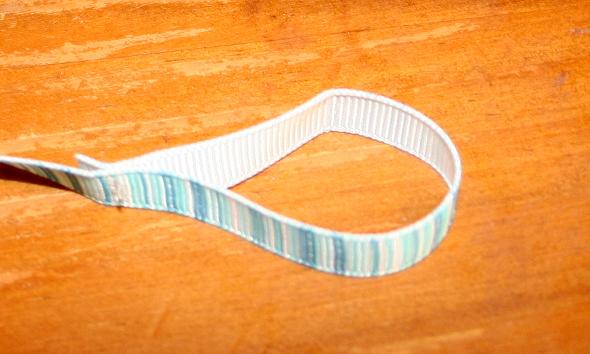 Next, I folded over a couple inches of ribbon and sewed across to make a hanging loop.