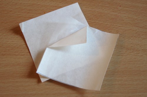 Cut an even number of squares of book covering film. Peel the backing off one square, and lay it sticky side up. Cut a long piece of thread and lay it across the film.