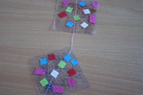 Voila! They look super pretty hanging in a sunny window! Perfect toddler craft, not too messy as long as you don’t mind glitter EVERYWHERE!!!