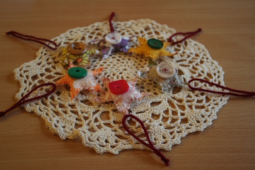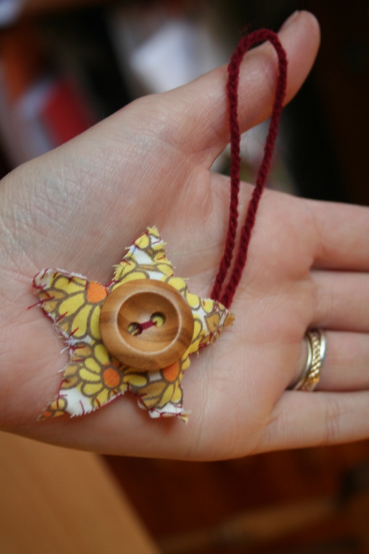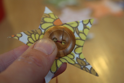 Finish sewing round the edges, then attach a loop of yarn to the end of one point to create a hanger.
