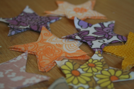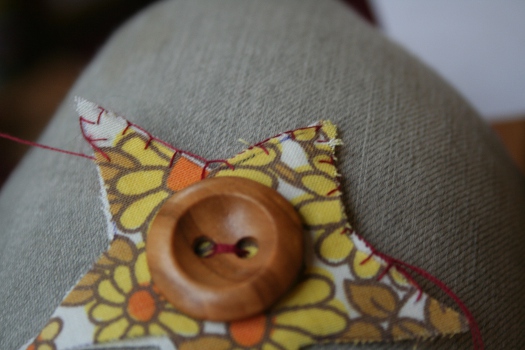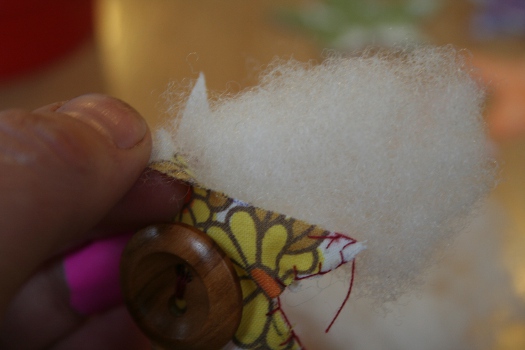 Start sewing each of the pairs, wrong sides together. When you’ve nearly got all the way around, push a little stuffing into the middle, you might need to use a pencil to help.
