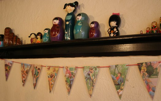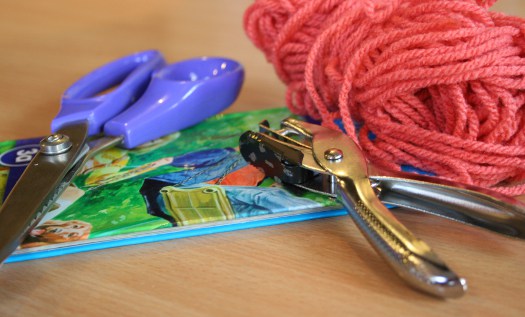 And that’s it! If you want you could knot a loop in each end of the ribbon/yarn to hang it with. I have plans to make many more to decorate our bookshelves!!