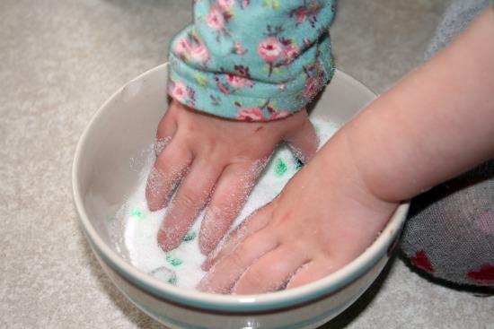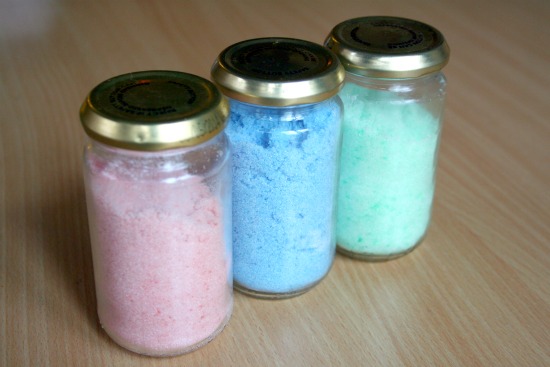 mix the colouring through the sugar with your fingers until it’s all mixed in.
